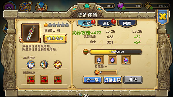 装备升级后属性会获得大幅的提升,装备的等级不能高于主角等级